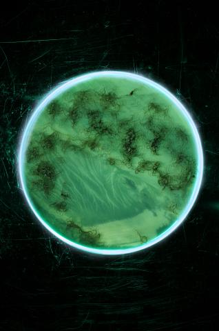 Cette exposition est investie par la notion d’anticipation. En évoquant la toxicité réelle bien qu’imperceptible des algues ainsi qu’en capturant un phénomène naturel , la réalité des milieux anoxiques*, Alice Pallot souhaite nous mettre face à la fragilité et l’imprévisibilité du monde naturel mis à l’épreuve et à l’effondrement de la biodiversité et de ses écosystèmes. Elle imagine le prolongement d’une crise actuelle à travers un processus plastique qui pousse les frontières du medium photographique, utilisant la pollution visuelle comme filtre photographique.